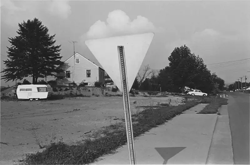 If there is an ancestor to this work—and all our work has ancestors, whether we’re aware of them or not—it would be a single photograph by Lee Friedlander of a cloud balanced on the edge of a triangular street sign. That playfulness is extended into an almost Shakespearean delight with visual rhyme that has a painted white line in the street continuing up into a white bag held by a woman in the crosswalk. Or the mimicry of a dark and light striped lego device in the hands of a child echoing the dark and light bands of wood venetian blinds behind him. Or a conduit pipe continuing as a flute in the hands of a busker. These optical coincidences, which are just one theme within the work, live only because Blake saw and photographed them.